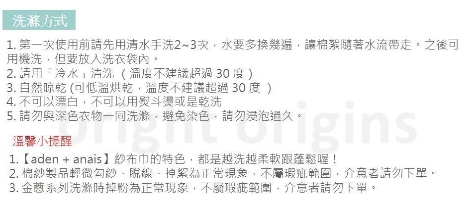 ★ 商品瑕疵換貨務必保留商品之完整性 (需含原廠包裝、未經剪標、未經使用、未下過水),請使用前務必先檢查有無瑕疵再行使用,如已使用非新品恕無法以瑕疵商品換貨!! 棉紗製品輕微勾紗、脫線、掉絮為正常現象,不屬瑕疵範圍,介意者請勿下單。