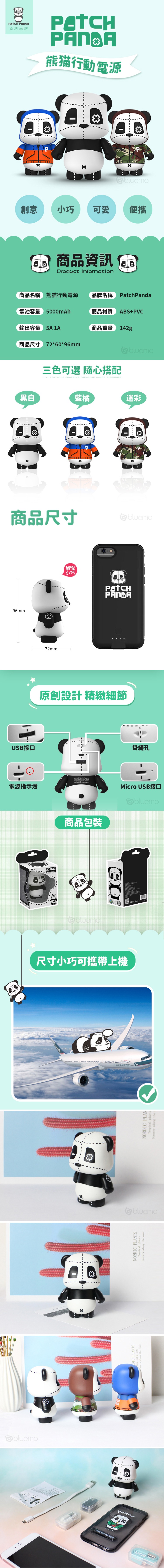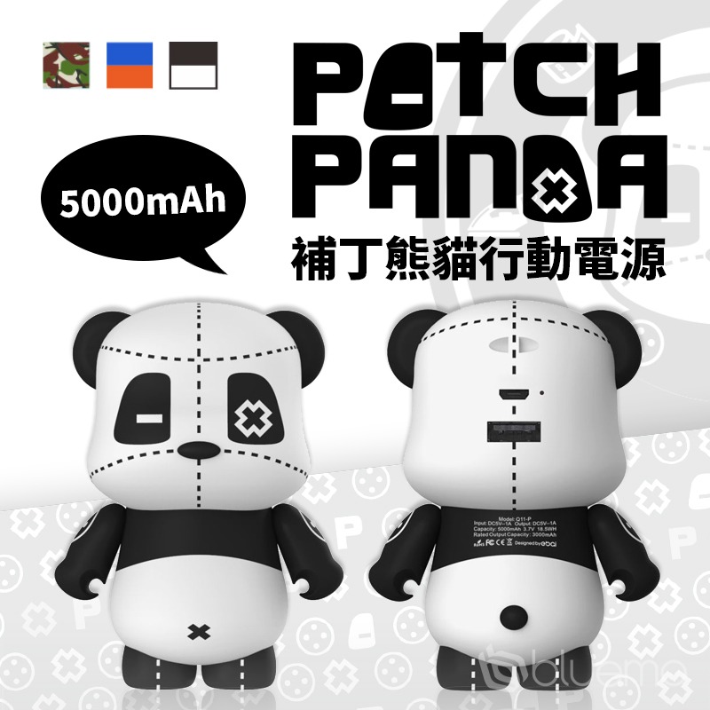 Bluemo 補丁熊貓 迷你公仔吊飾 5000mAh 行動電源【黑白】