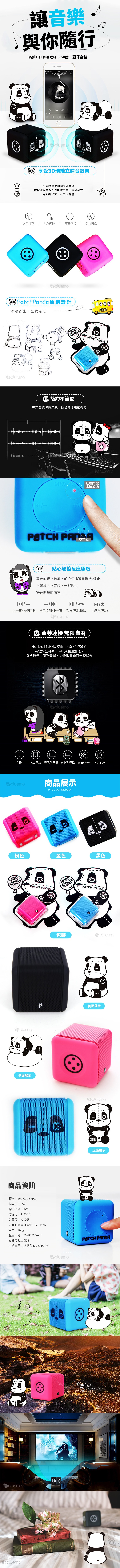 Bluemo 補丁熊貓 迷你觸控 可通話 藍芽音響【藍色】