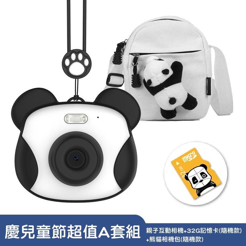 慶兒童節超值A套組-親子互動相機-黑熊貓+32G記憶卡+相機包