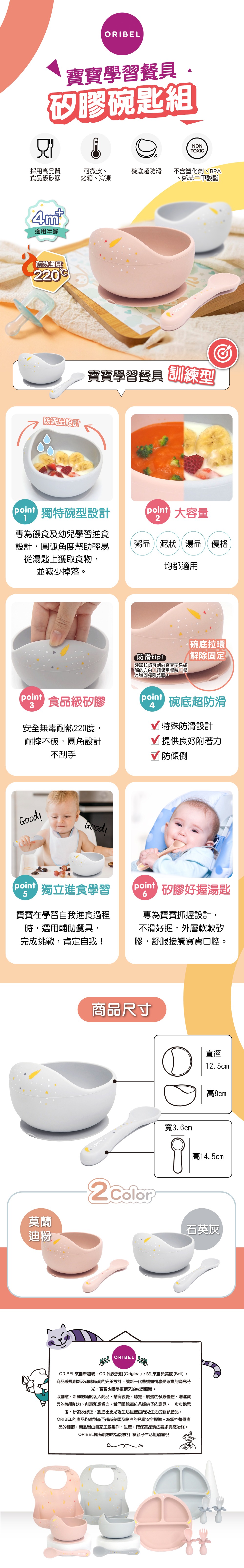 寶寶學習餐具-矽膠碗匙組-石英灰