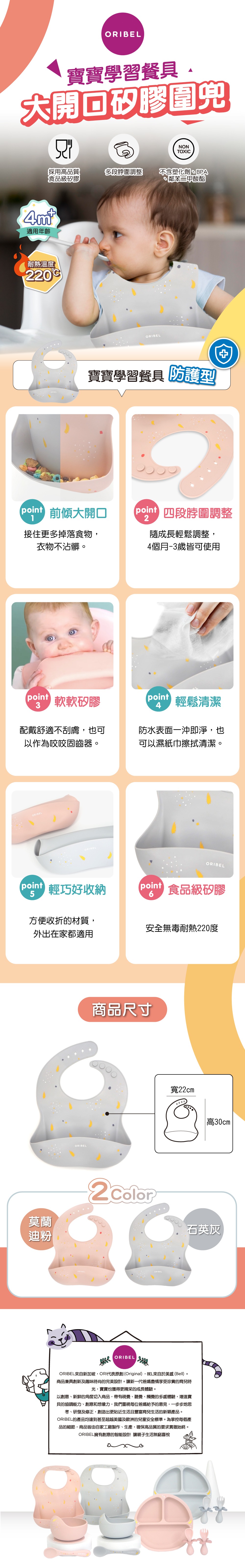 寶寶學習餐具-矽膠圍兜-莫蘭迪粉