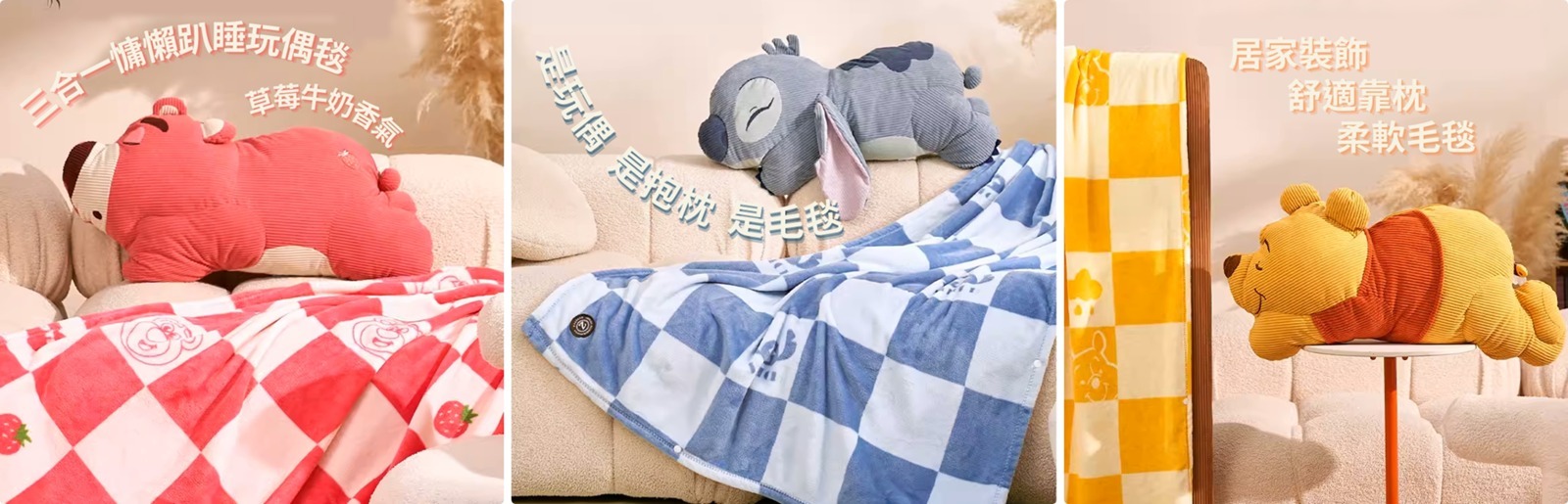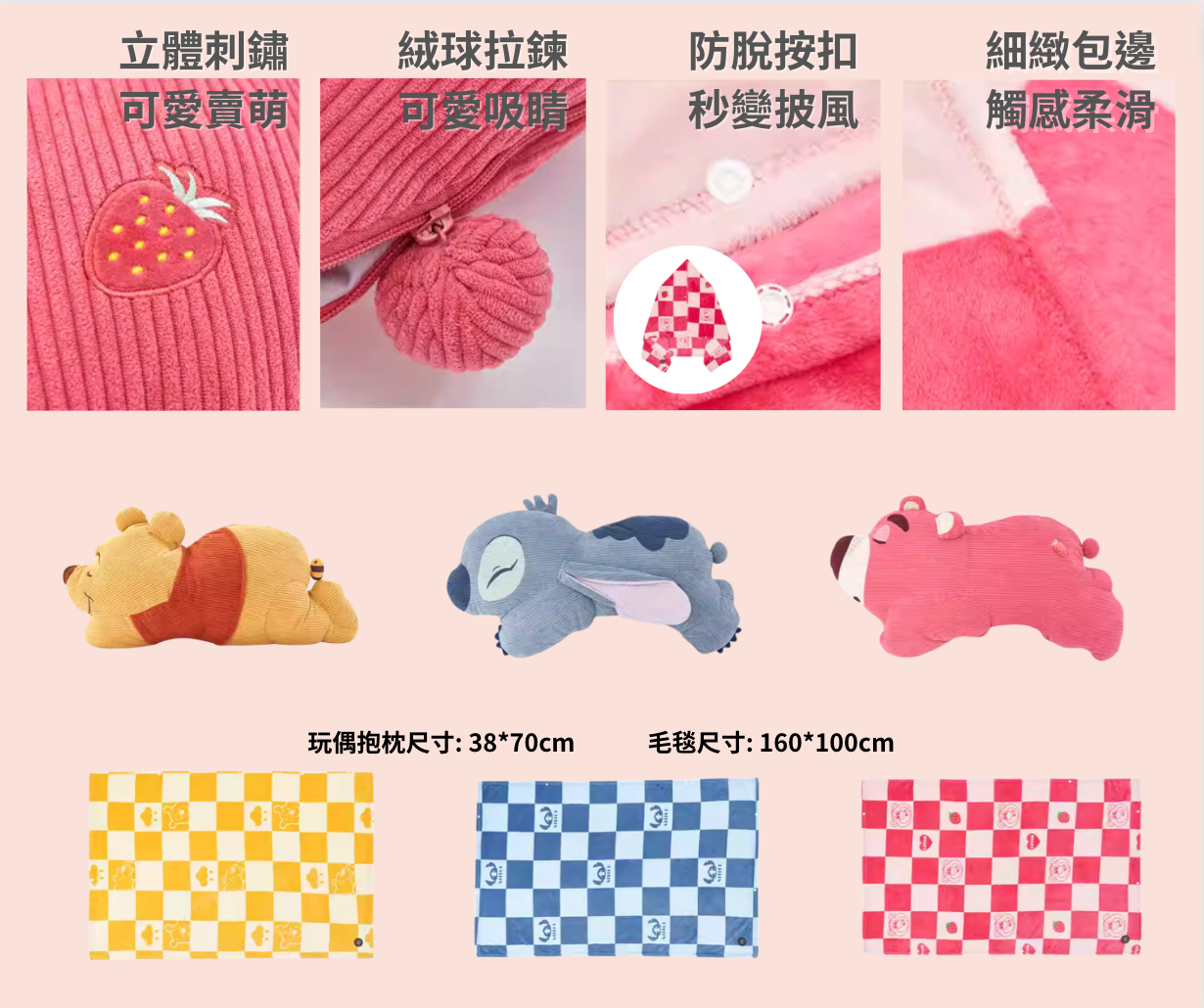 Zoobeis迪士尼慵懶趴睡玩偶毯-熊抱哥(草莓奶油味)