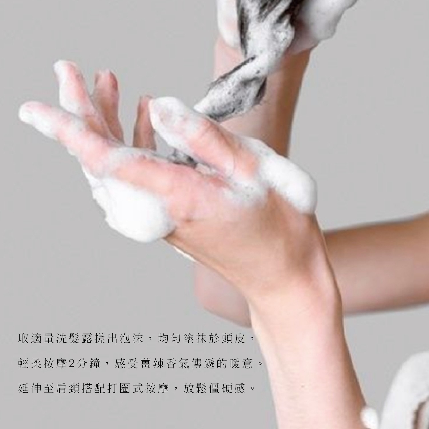頭髮頭皮清潔後適量擦抹頭皮並加以按摩。