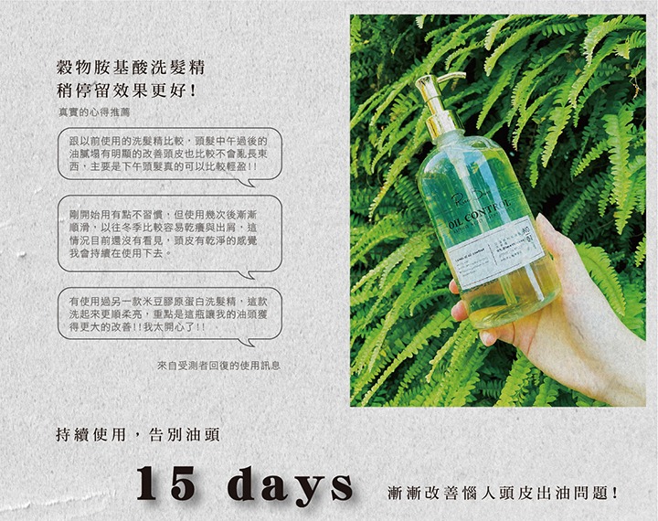 不只皮膚要油水平衡,頭皮也要,油水不平衡,容易掉髮,頭髮稀疏看起來就更沒精神了。