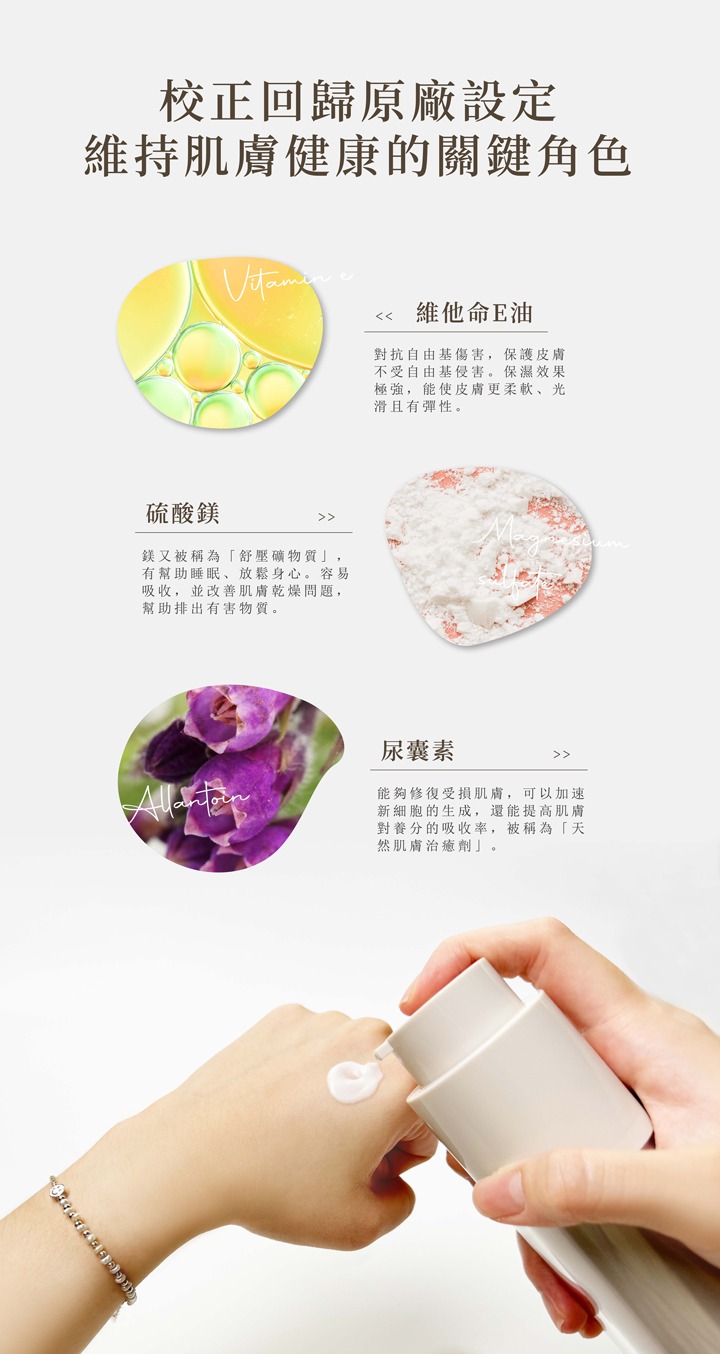 尿囊素可以促進上皮細胞生長修護受損頭皮組織及降低頭皮受化學品的刺激,還具抗汗除臭功能。