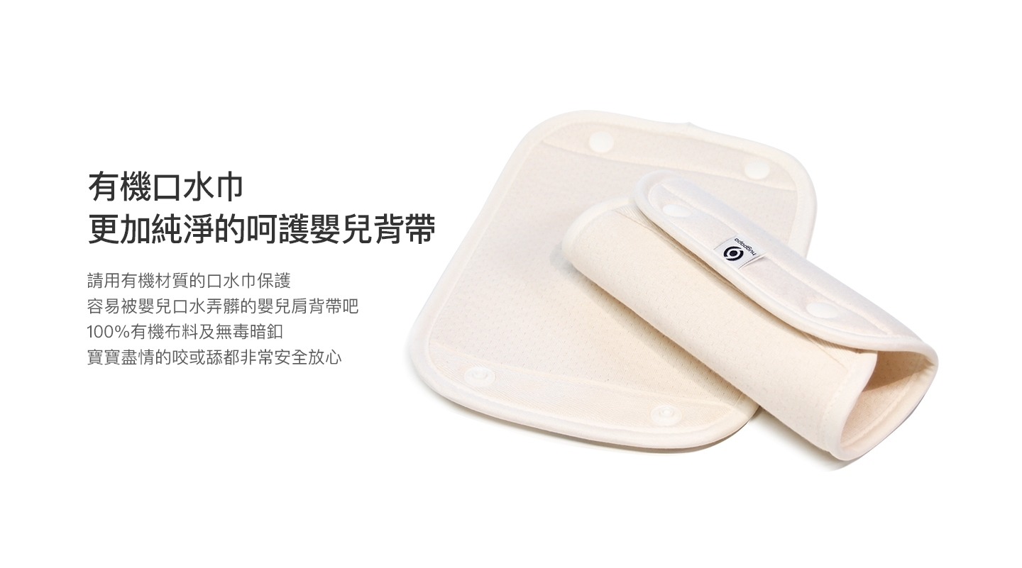 來自韓國品牌的背巾口水巾,使用100%有機布料及無毒暗扣製成的,爸爸媽媽可以放心地讓寶寶盡情地咬或舔都非常安全,使用口水巾也可以保護容易被嬰兒口水弄髒的嬰兒透氣背帶。