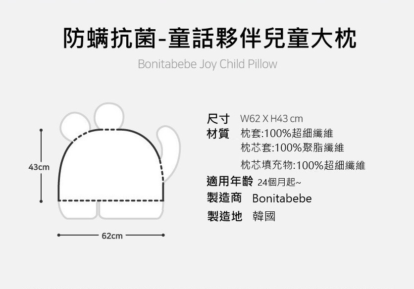 特惠/韓國Bonitabebe防螨抗菌-童話夥伴兒童大枕老虎
