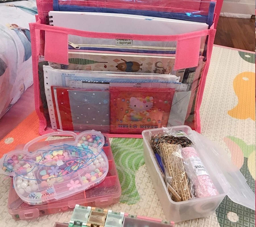 魔鬼粘黏貼方式開合,正面和側面均有小卡袋,可以標籤清楚地識別物品分類